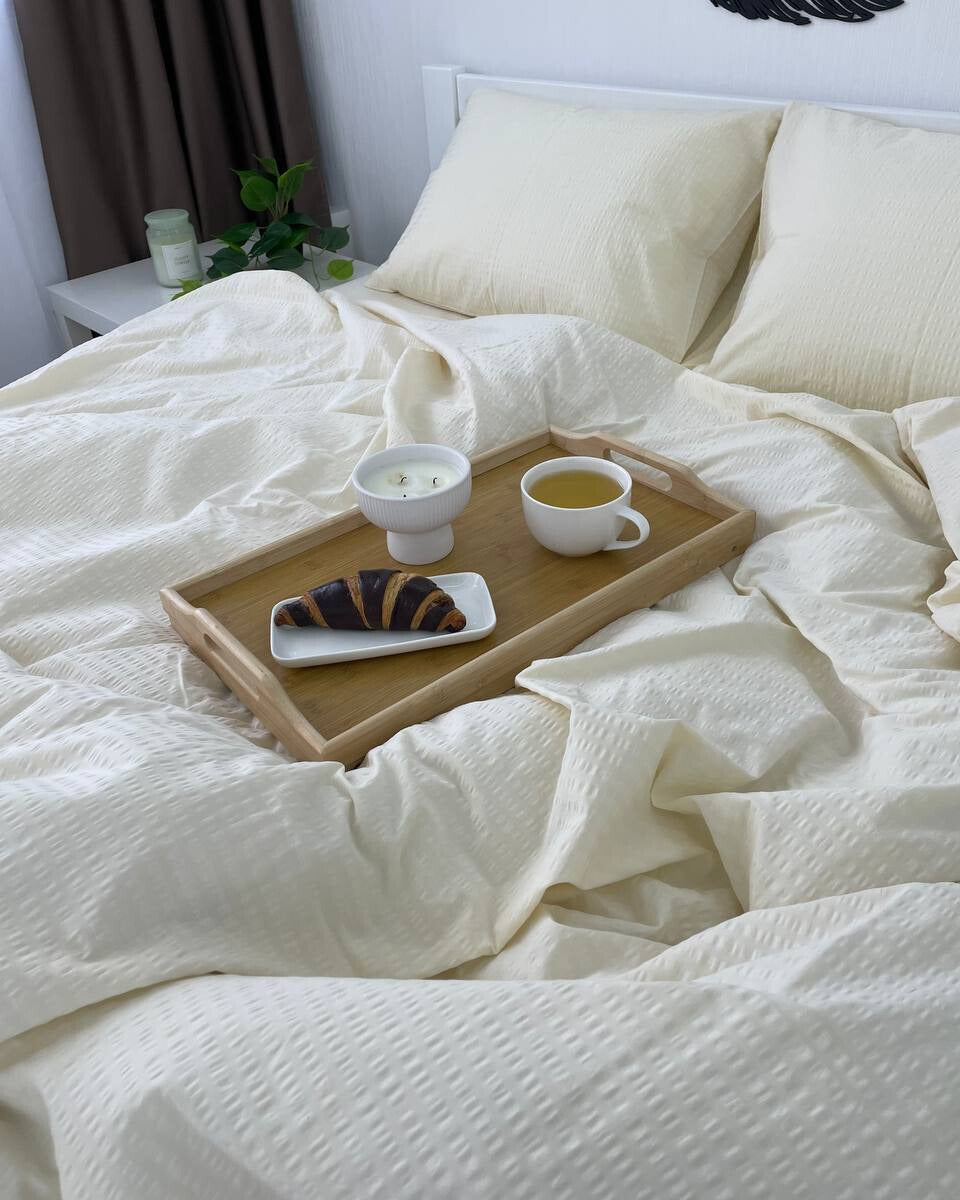 Premium Ranforce Seersucker Bedding Set – Soft Cream