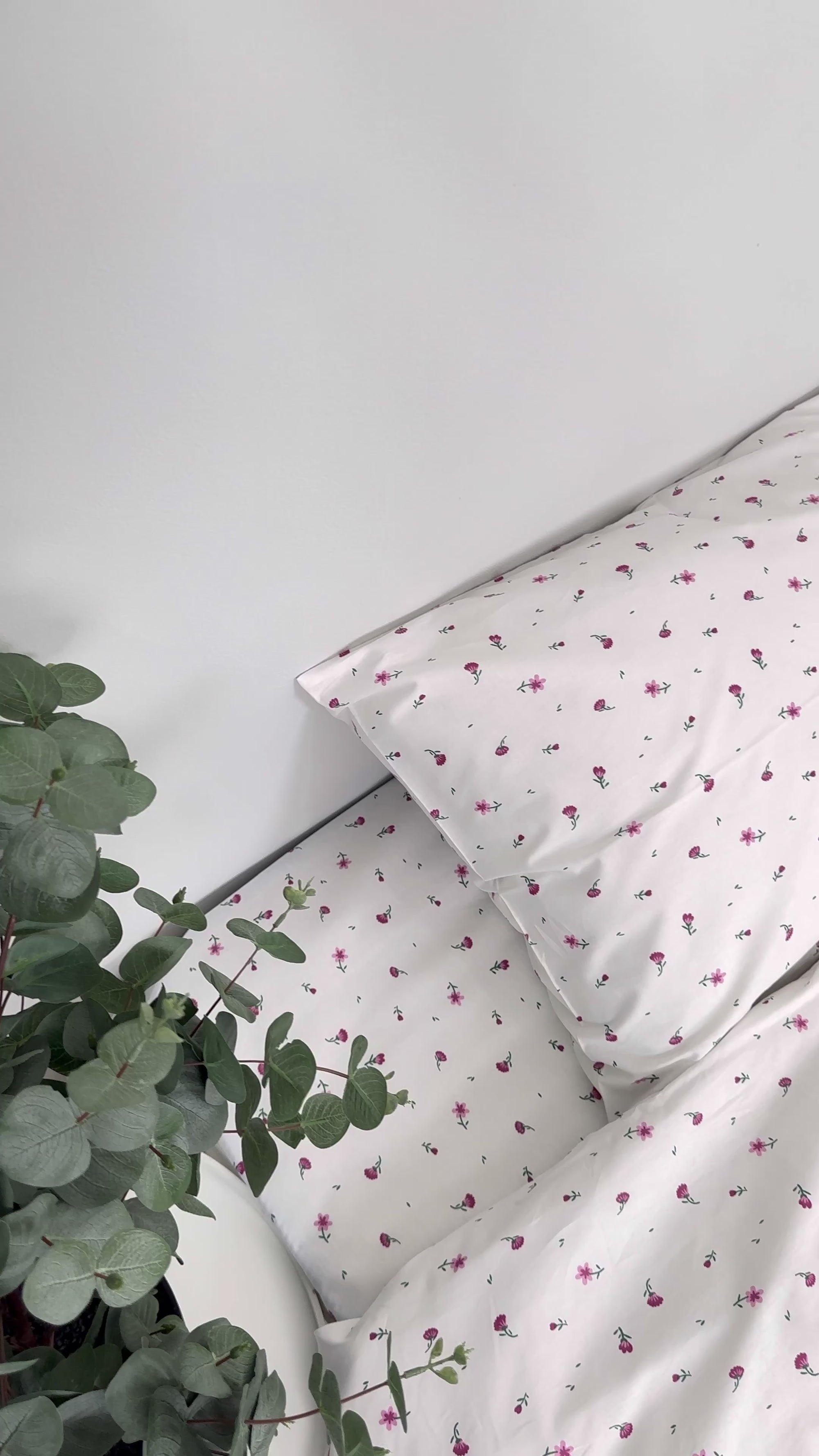 Featuring a soft white background sprinkled with tiny pink blossoms and subtle floral accents, this design brings a fresh, romantic feel perfect for cozy, feminine, or minimalist interiors.