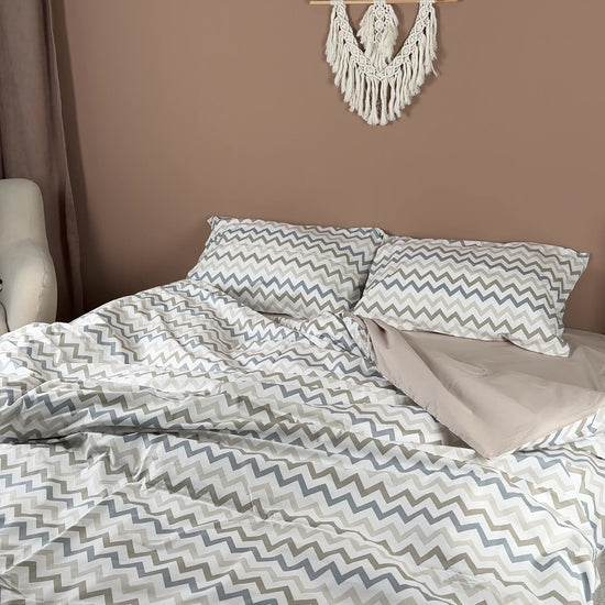 The Zigzag Neutral bedding set offers a calming colour palette of taupe, grey, and beige in a stylish zigzag design that complements any interior. Made from high-quality Ranforce cotton, it combines breathability with modern aesthetics – ideal for restful nights and stylish mornings.