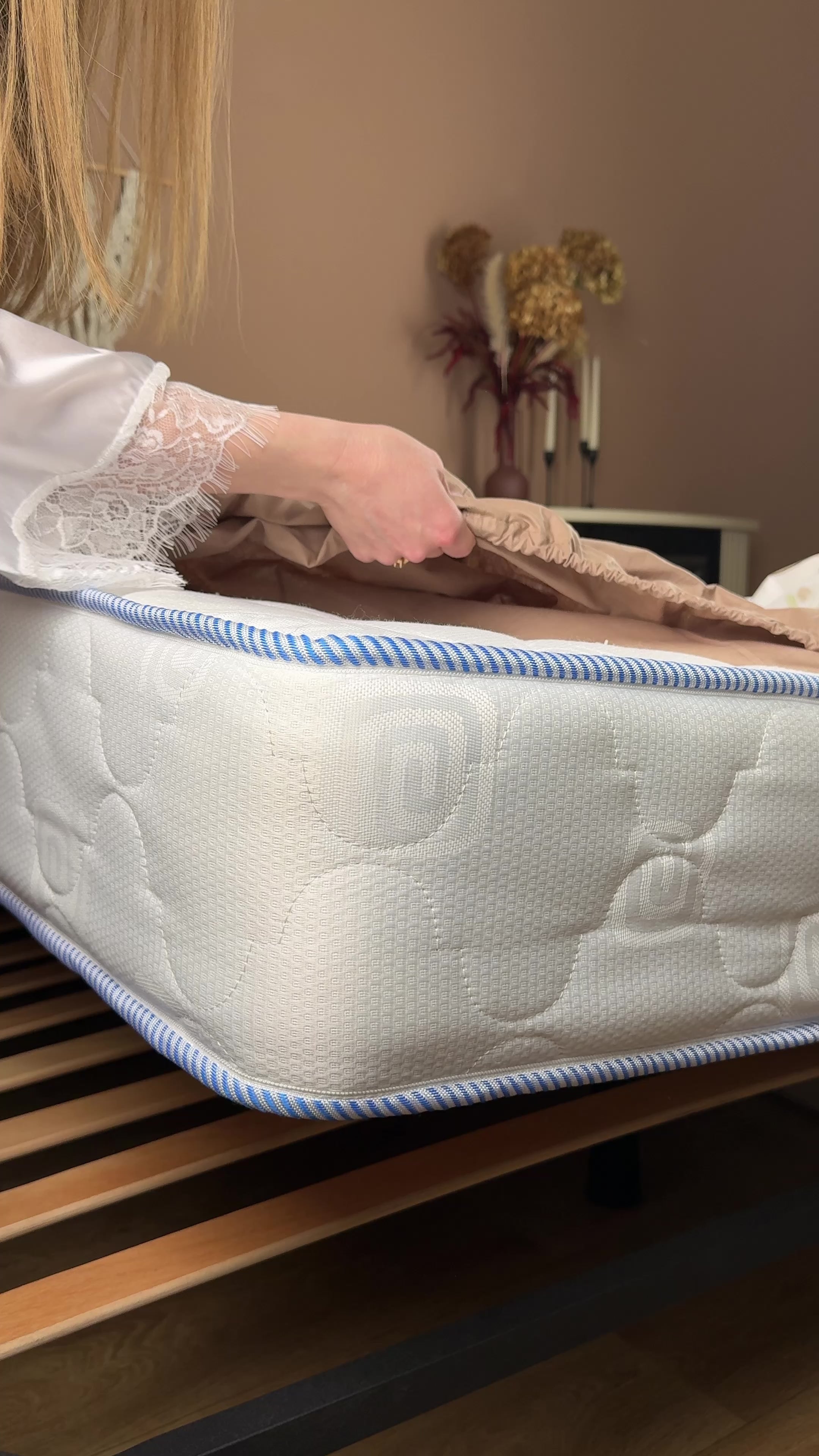 Warm latte fitted sheet for a cozy, natural aesthetic
