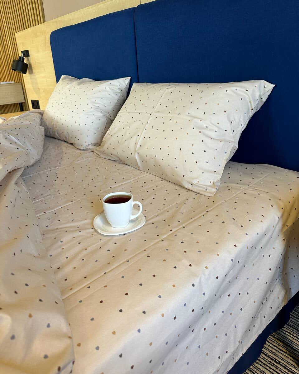 Premium Ranforce Cotton Bedding Set – Beige Mini Hearts