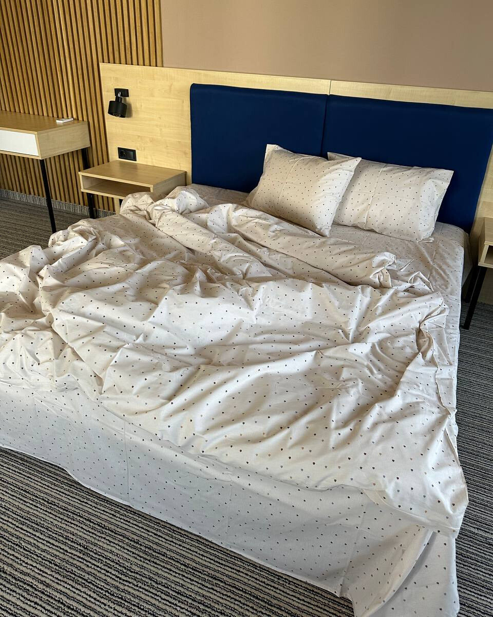 A soft and charming Beige Mini Hearts bedding set designed to bring warmth and subtle elegance into your bedroom.
