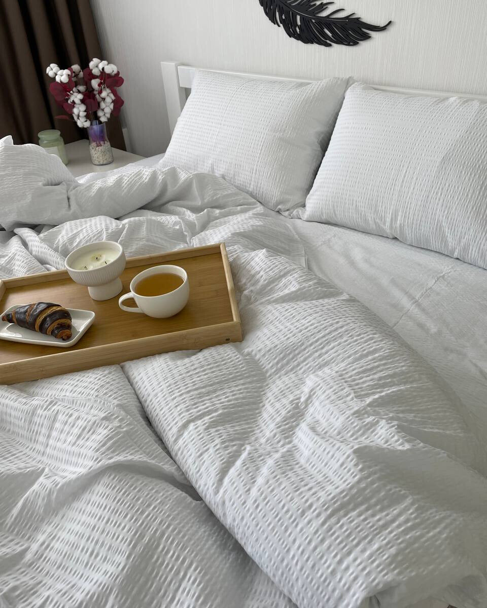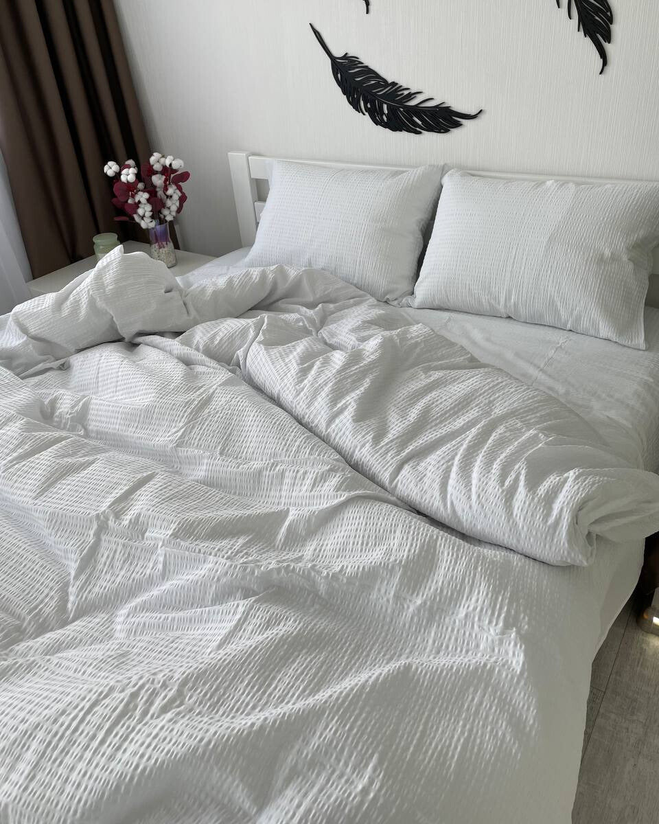 Premium Ranforce Seersucker Bedding Set – Pure White