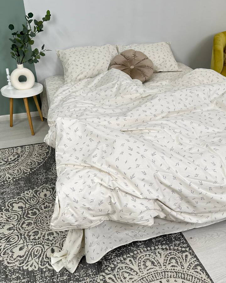 Bring gentle elegance and natural harmony into your bedroom with the Soft Leaf Cream Premium Ranforce bedding set.