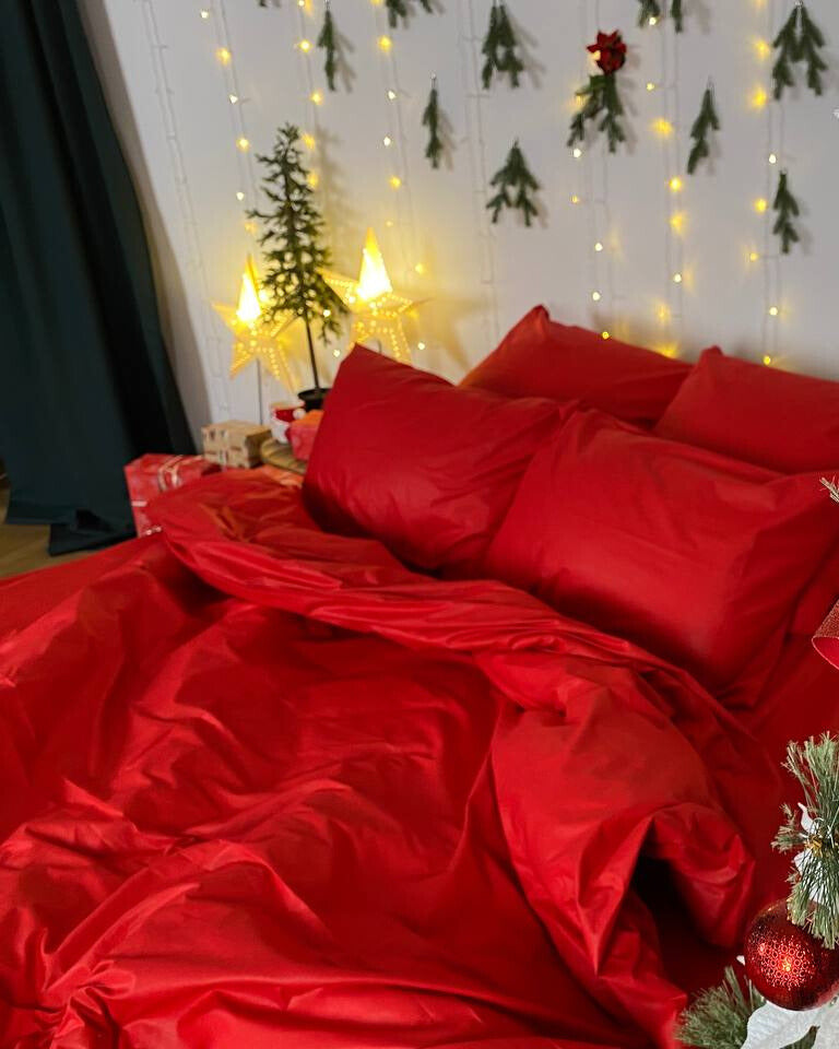 Premium Ranforce Cotton Bedding Set – Holiday Red Glow