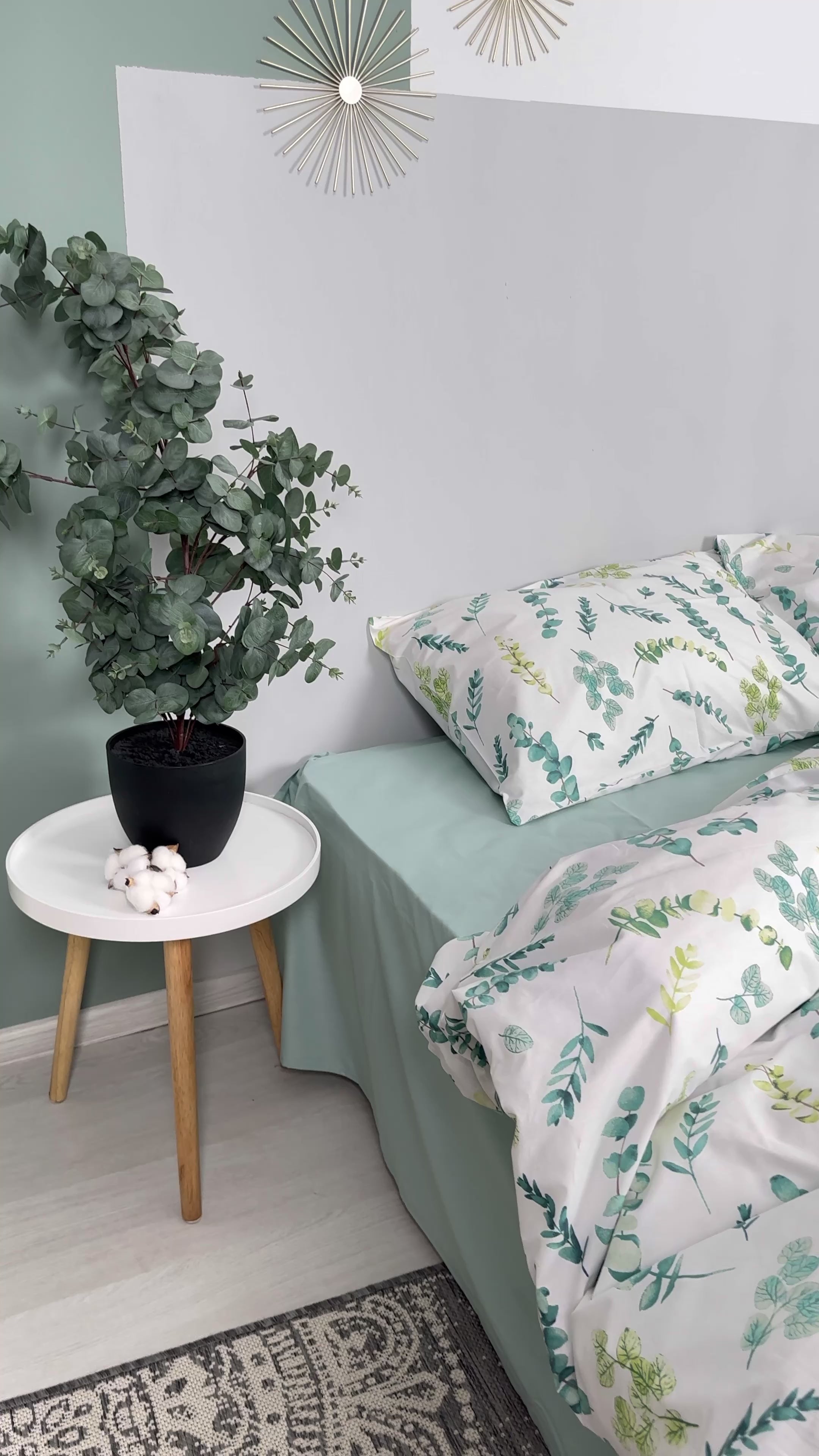 Transform your bedroom into a peaceful botanical retreat with the Eucalyptus Garden bedding set.