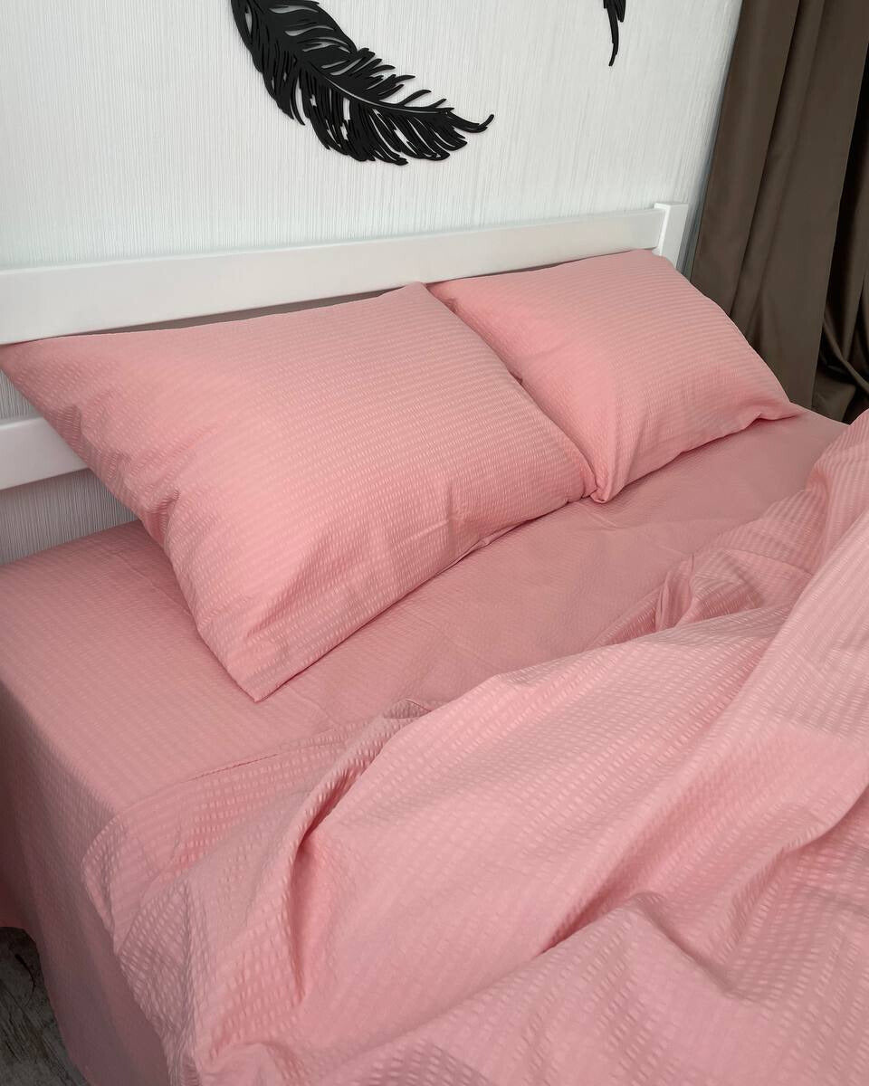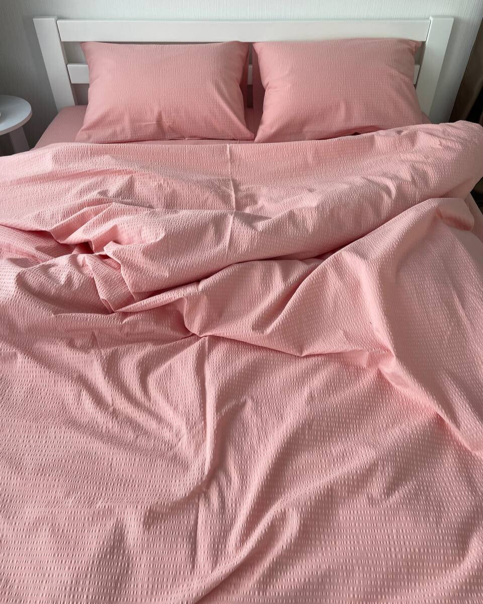 Premium Ranforce Seersucker Bedding Set – Pink Blush