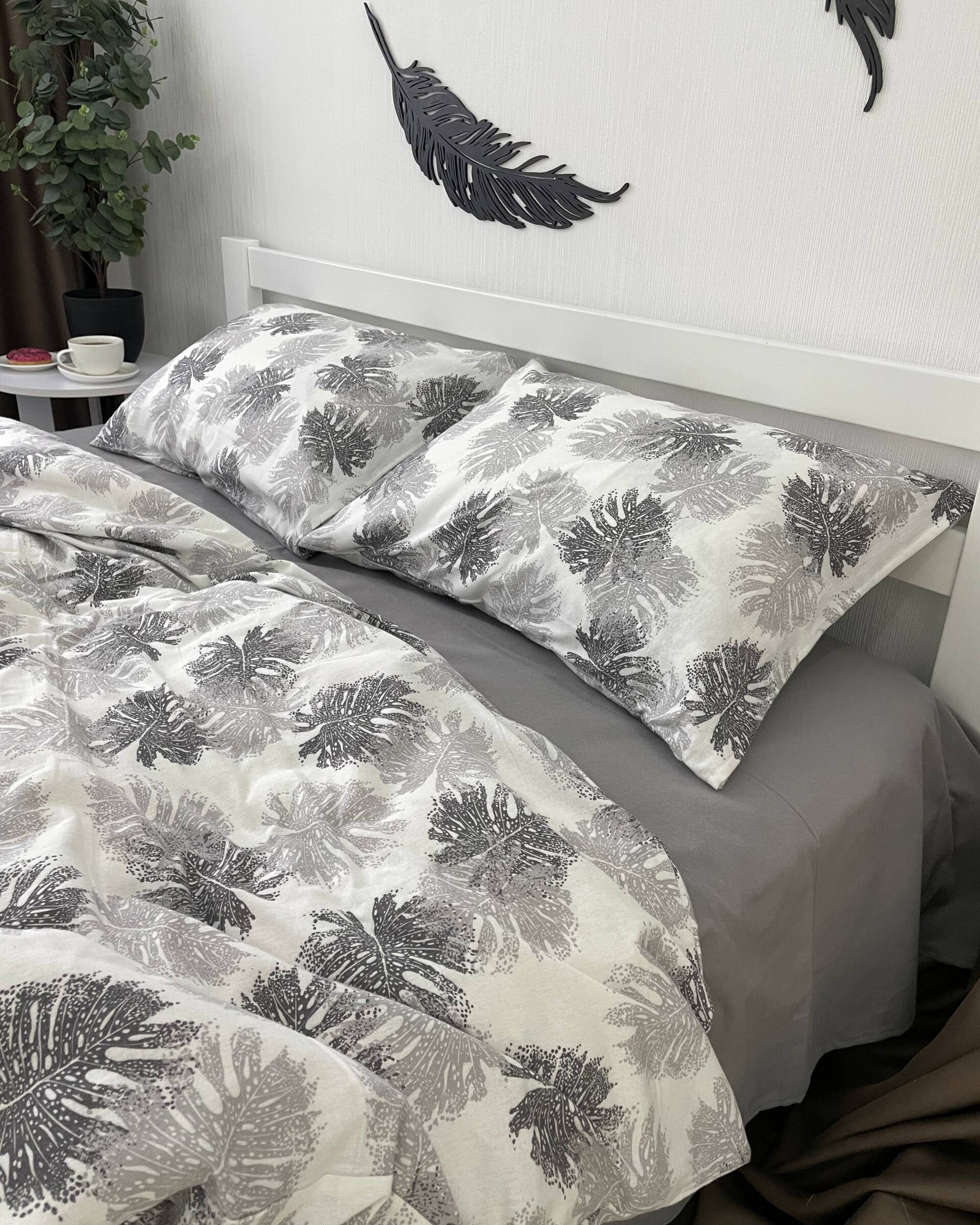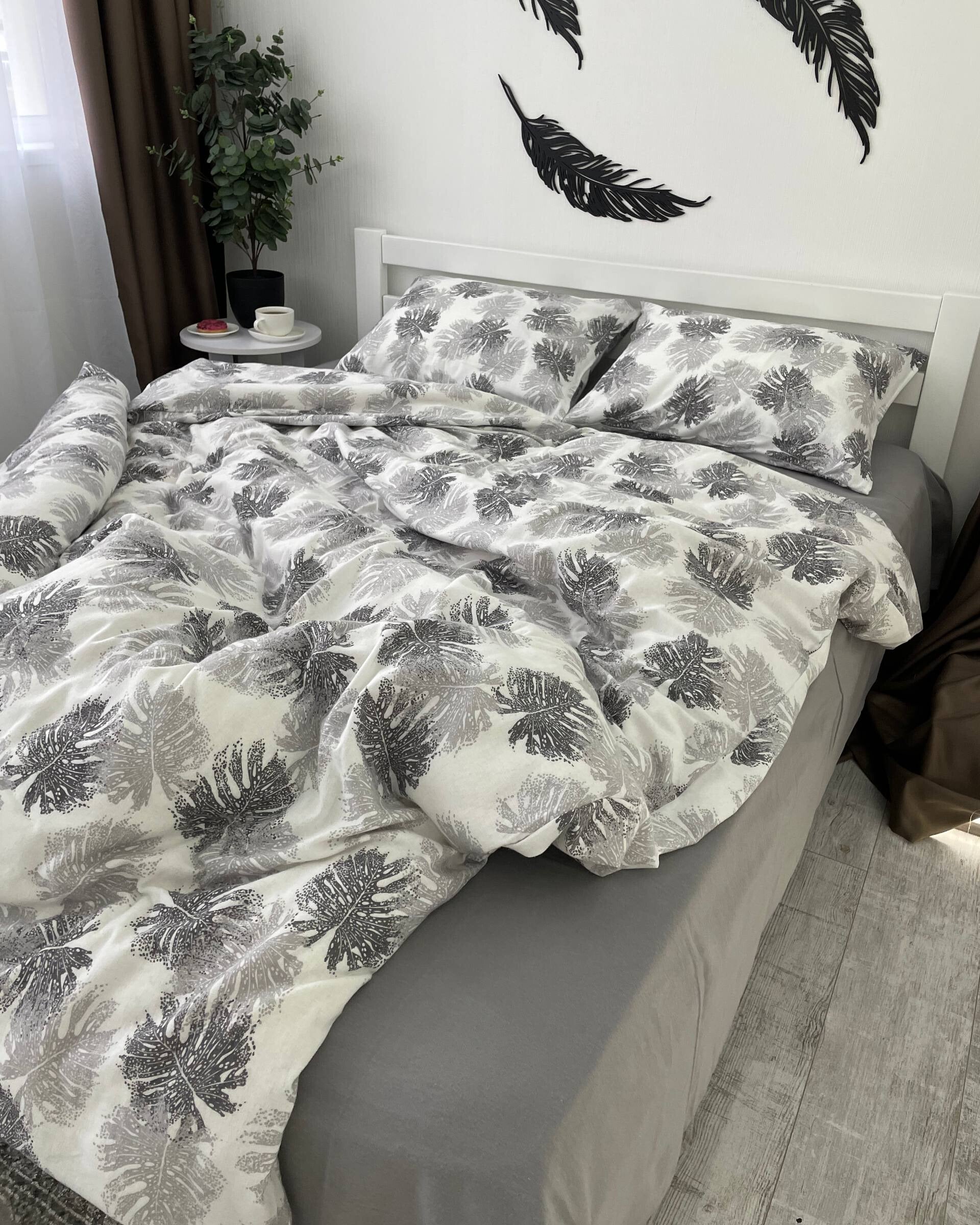 Wrap your bedroom in cozy elegance with the Monstera Grey flannel bedding set.